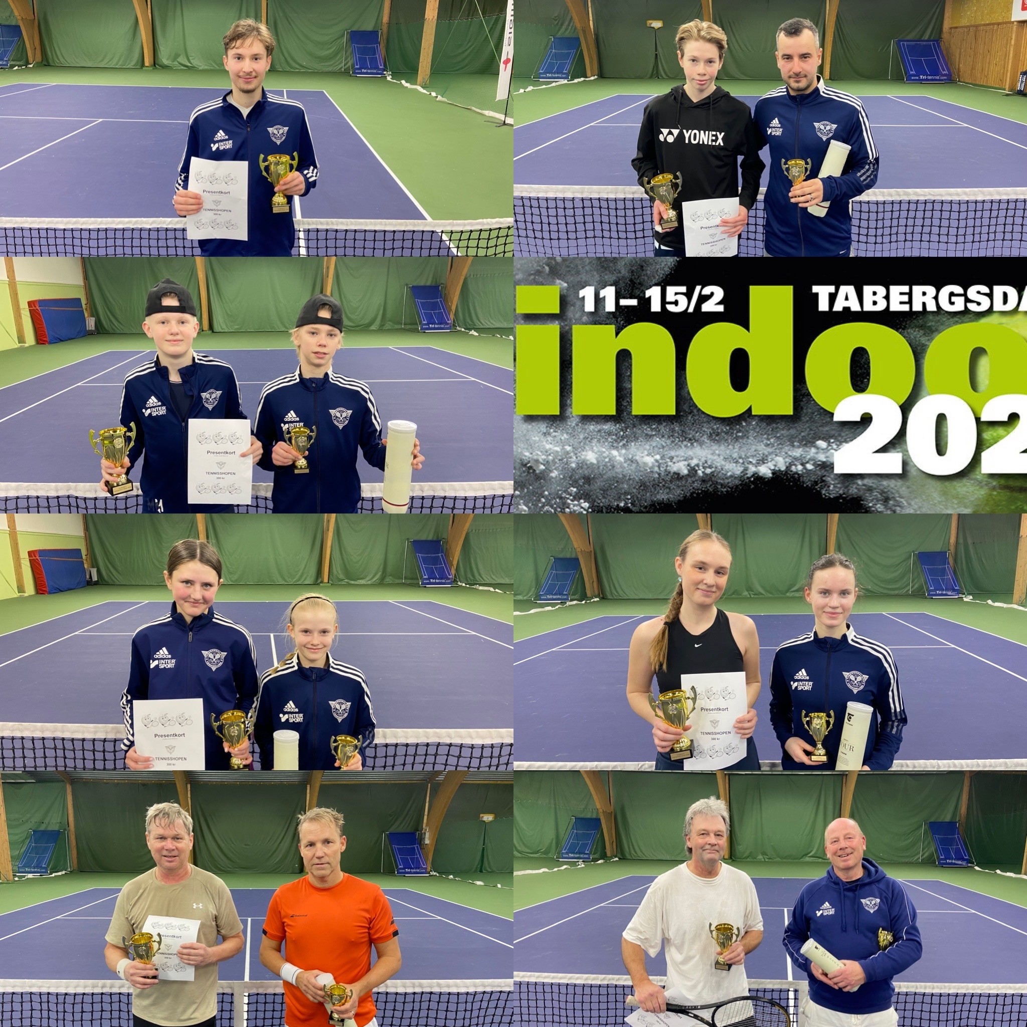 Finaldag Tabergsdalen Indoor – nya vinnare korade…! På söndagen så spelades sju finaler. Herrar A; 1:a Edin Hibic, Tabergsdalen. Damer B; 1:a Minna Alvarsson, Tabergsdalen, 2:a Amanda Ekwurtzel, Tabergsdalen. Herrar B; 1:a Algot Engblom, TK Saab Linköping, 2:a Robert Ungurjanovic, Tabergsdalen. Damer C; 1:a Ebba Eriksson, Växjö, 2:a Siri Cronholm, Tabergsdalen. Herrar C; 1:a Matteo Malm, Tabergsdalen, 2:a Harry Höög, Tabergsdalen. Herrar 55; 1:a Ola Jönsson, Falköping, 2:a Tony Strand, Mjölby. Herrar 65; 1:a Håkan Dehlen, Mariestad, 2:a Hans Svensson, Tabergsdalen. Här länk till resultat…! Här länk till MatchiTV och söndagens matcher…! Stort TACK till ALLA som gjort evenemanget möjligt – cafévärd, domare, matchledare och sekretariat mm. 2026-02-15
