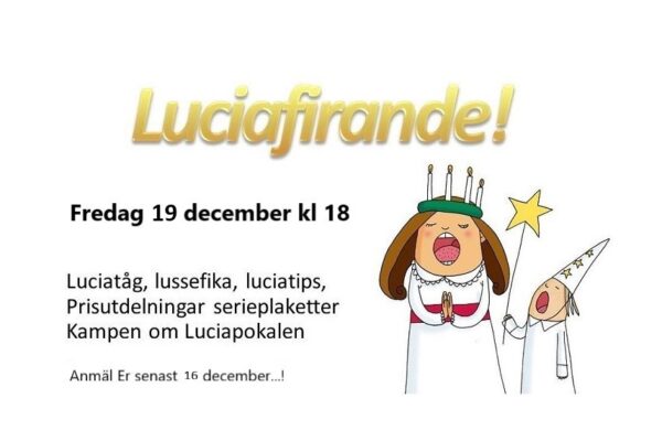 TaTKs Luciafirande med prisutdelningar…! På fredagskvällen 19 december bjuds det på Lussefika och Luciatips! Prisutdelningar till serievinnare. Anmäl Er via e-post; tabergsdalens.tk@telia.com senast onsdag 17 …