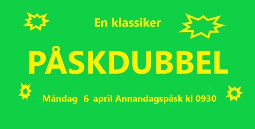 Spela PÅSKDUBBEL…! Slå en signal till Din dubbelkompis och anmäl Er till årets Påskdubbel som spelas på förmiddagen på Annandagspåsk måndag 6 april – sänd e-post till; tabergsdalens.tk@telia.com senast lördag 4 april…! Titelförsvarare är Bengt Johansson/Patrik Jönsson. 2026-03-31